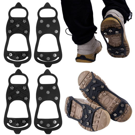 WBCBEC 2 Pairs Non Slip Gripper Spike Ice Traction Cleats Walk Traction Cleat Durable Ice Snow Grips for Shoes, Boot with 8 Steel Studs Crampons